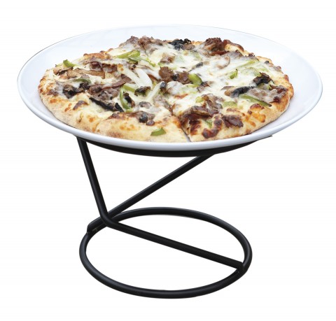 Specialty Reversible Stand, 9" top dia. x 7" bottom dia. x 7"H, for round bowl or plate, metal, black (to be discontinued, contact factory for availability)