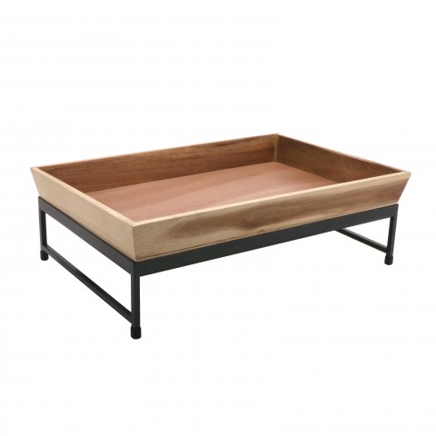 Urban Renewal™ Display Stand Set, 2-piece, flat, 1-tier, 17-3/4"L x 11-7/8"W x 6"H, rectangular, includes (1) gunmetal grey powder-coated iron stand (IR-736-MG) & (1) urban rustic wooden display tray (WB-1812WD-UR)