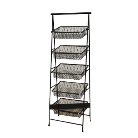 Urban Renewal™ POP™ Pane Stand, 23-1/2“ x 14“ x 64", rectangular, 5-tier, tilted (fits IR-903, IR-904, BAMTRY-01, BAMTRY-02, WB-953, WB-954), metal, black (baskets not included)