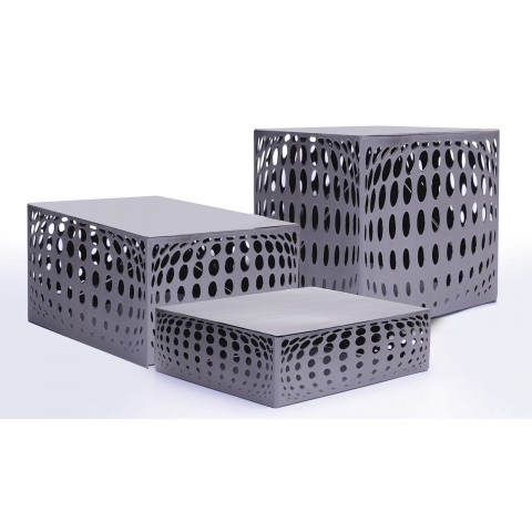 Urban Renewal™ Bulge™ Display Riser Set, (1) 12" x 10" x 3"H, (1) 12" x 10" x 6"H, (1) 12" x 10" x 9"H rectangular, iron, silver powder coated finish