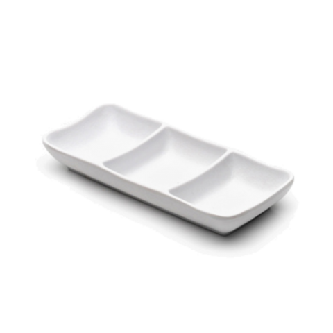 Elite Global Solutions - Tray, 7 oz., 7-5/8"L x 3-1/4"W x 1"H, rectangular, 3-compartment, break, chip, stain & scratch resistant, dishwasher safe, BPA free, melamine, white, Zen