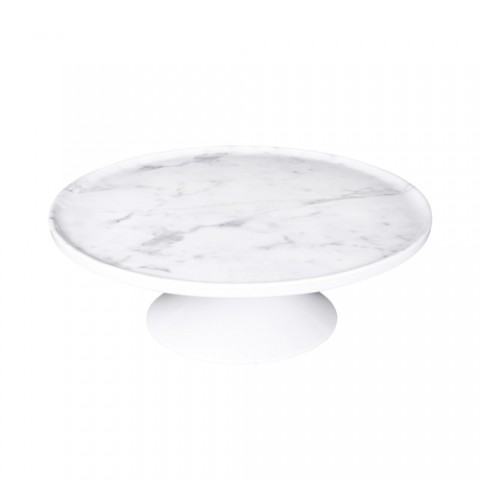Elite Global Solutions - Melamine Plate Stand, 12" dia. x 4"H, round, two-piece kit, screw-on top, break, chip, stain & scratch resistant, dishwasher safe, BPA free, faux carrara marble look, Sierra (Kit Consists of M12RP-C and M63P-W)