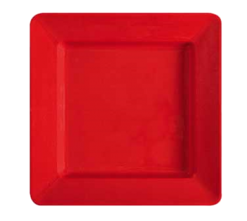 Red Sensation™ Plate, 12"L x 12"W, square, wide rim, with rubber feet, break-resistant, dishwasher safe, BPA free, melamine, red, NSF