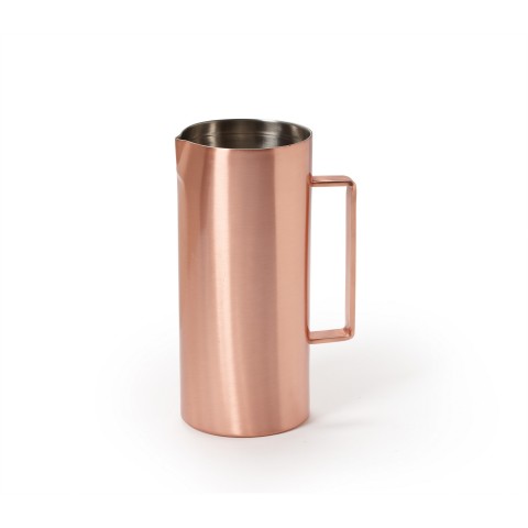 Pitcher, 51.2 oz. (67.2 oz. rim full), 4-4/5" dia. (6-1/3" with handles) x 10"H, handled, insulated, double wall, copper plated stainless steel, brushed finish