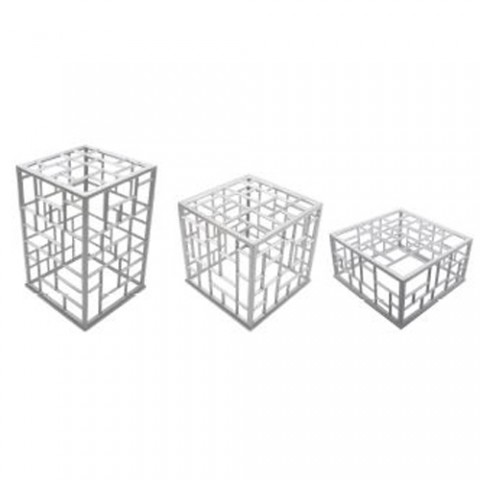 Bugambilia® Mondrian Riser Set, 3 piece, includes (1) each: 10" x 10" x 14-1/2"H, 11" x 11" x 10-3/4"H, 13" x 13" x 6-3/4"H, square, cast aluminum with powder coating, solid white (30 day lead time)