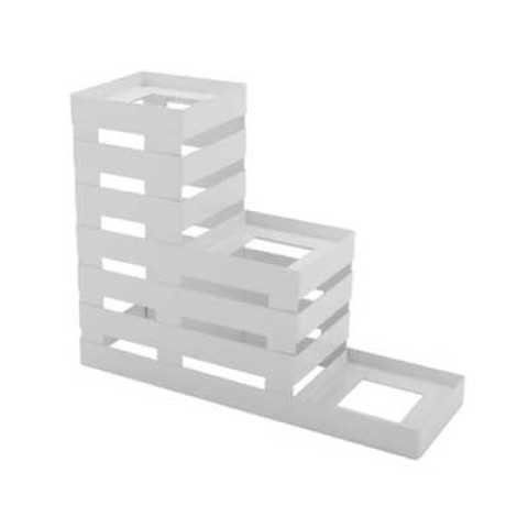 Curator™ Condiment Stand, 12-1/2 x 4-1/4" x 9-3/4", 3-tier, fits 4" x 4" square bowls, powder coated iron, white (to be discontinued, contact factory for availability)