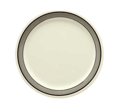 Diamond Cambridge™ Plate, 10-1/2" dia., round, narrow rim, break-resistant, dishwasher safe, BPA free, melamine, white with gray rim, NSF
