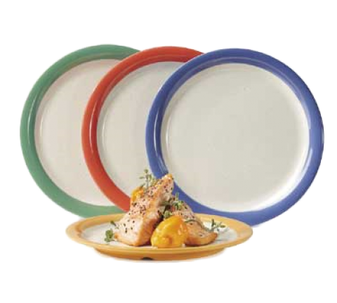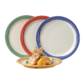 Diamond Mardi Gras™ Plate, 9" dia., round, narrow rim, break-resistant, dishwasher safe, BPA free, melamine, (6 two-tone mix pack of each color: tropical yellow, rio orange, peacock blue & rainforest green), NSF