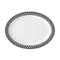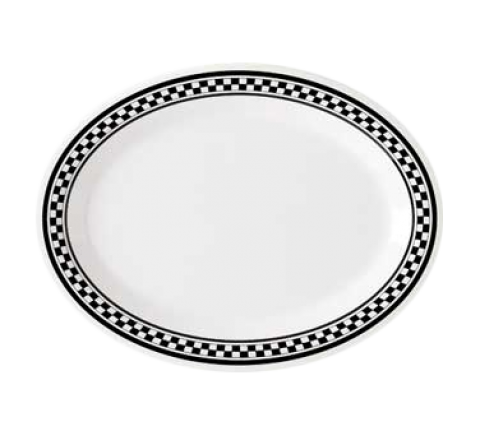 Diamond Chexers™ Platter, 12"L x 9"W, oval, break-resistant, dishwasher safe, BPA free, melamine, white with black checkerboard pattern on rim, NSF