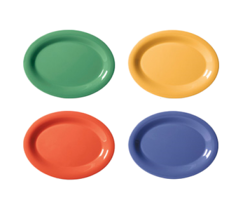 Diamond Mardi Gras™ Platter, 13-1/2"L x 10-1/4"W, oval, break-resistant, dishwasher safe, BPA free, melamine, mix pack of 4 Mardi Gras™ colors (tropical yellow, rio orange, peacock blue & rainforest green), NSF