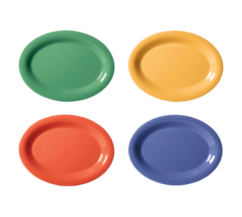 Diamond Mardi Gras™ Platter, 9-3/4"L x 7-1/4"W, oval, break-resistant, dishwasher safe, BPA free, melamine, mix pack of 4 Mardi Gras™ colors (tropical yellow, rio orange, peacock blue & rainforest green), NSF