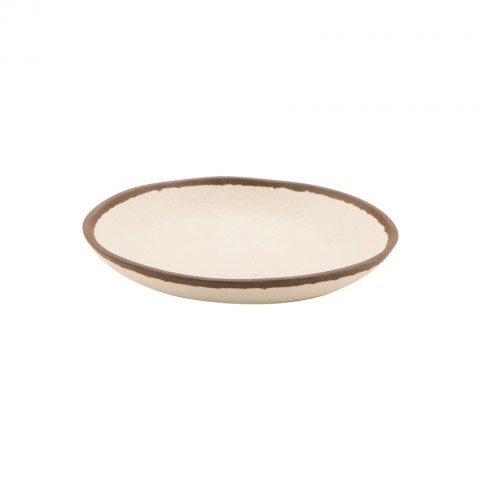 Pottery Market™ Dinner Plate, 10-1/2" dia., round, break-resistant, dishwasher safe, melamine, cream with brown trim, NSF, BPA free