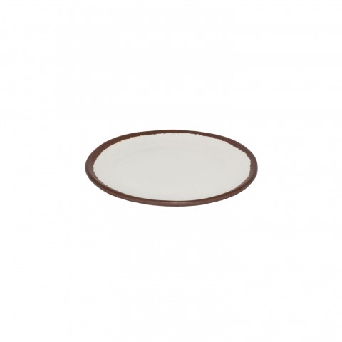 Pottery Market™ Bread/Side Dish/Plate, 5-1/2" dia., small, round, break-resistant, dishwasher safe, melamine, cream with brown trim, NSF, BPA free