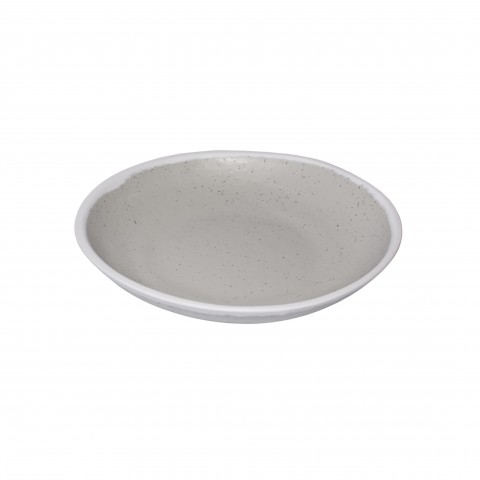 Pottery Market™ Plate, 8-3/10" dia., small, round, coupe, break-resistant, dishwasher safe, melamine, dove gray with white trim, NSF, BPA free