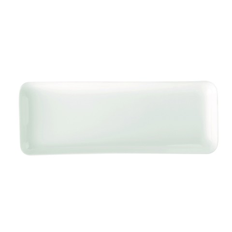 Tray, 14-1/6" x 5-1/2", rectangular, rolled edge, geometric line, scratch/chip resistant, microwave, dishwasher & oven safe up to 380°F, porcelain, Corona, Asia, bright white (Stocked Item)