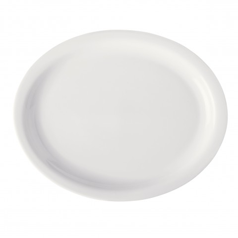Platter, 11-3/4" x 9-2/3", oval, narrow rim. rolled edge, scratch/chip resistant, microwave, dishwasher & oven safe up to 380°F, porcelain, Corona, Actualite, bright white (Ready to Ship from Factory - 4-6 weeks for transit)