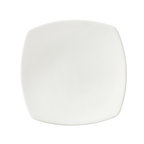 Plate, 9-1/2", square, rolled edge, geometric line, scratch/chip resistant, microwave, dishwasher & oven safe up to 380°F, porcelain, Corona, Asia, bright white (Stocked Item)