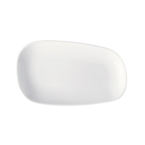 Asymmetric Plate, 9-3/4" x 5-3/4", oblong, rolled edge, scratch/chip resistant, microwave, dishwasher & oven safe up to 380°F, porcelain, Corona, Elegance, bright white (Stocked Item)