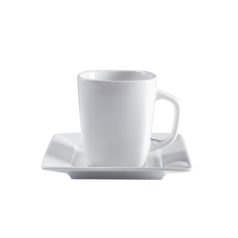 Cup, 8 oz, 4", square with rounded corners, non-stackable, scratch/chip resistant, microwave, dishwasher & oven safe up to 380°F, porcelain, Corona, Zen, bright white (Ready to Ship from Factory - 4-6 weeks for transit)