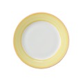 Plate, 6-1/2" dia., round, rolled edge, scratch/chip resistant, microwave, dishwasher & oven safe up to 380°F, porcelain, orange edge, Corona, Calypso, Yellow (Stocked Item)