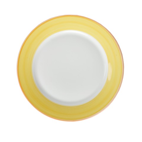 Plate, 10" dia., round, rolled edge, scratch/chip resistant, microwave, dishwasher & oven safe up to 380°F, porcelain, orange edge, Corona, Calypso, Yellow (Ready to Ship from Factory - 4-6 weeks for transit)