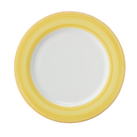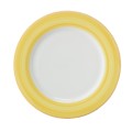 Plate, 10-5/8" dia., round, rolled edge, scratch/chip resistant, microwave, dishwasher & oven safe up to 380°F, porcelain, orange edge, Corona, Calypso, Yellow (Stocked Item)