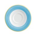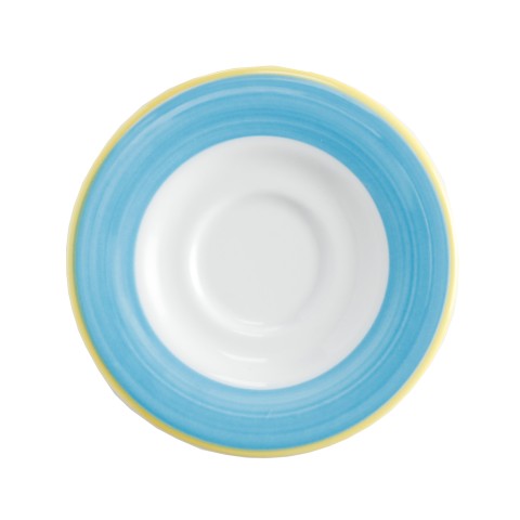 Coffee/Espresso Saucer, 5" dia., round, scratch/chip resistant, microwave, dishwasher & oven safe up to 380°F, porcelain, yellow edge, Corona, Calypso, Blue (Ready to Ship from Factory - 4-6 weeks for transit)