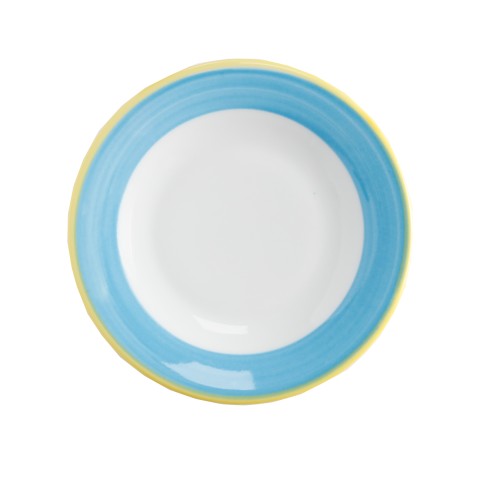 Plate, 7-1/4" dia., round, rolled edge, scratch/chip resistant, microwave, dishwasher & oven safe up to 380°F, porcelain, yellow edge, Corona, Calypso, Blue (Stocked Item)