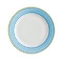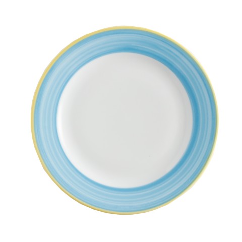 Plate, 10" dia., round, rolled edge, scratch/chip resistant, microwave, dishwasher & oven safe up to 380°F, porcelain, yellow edge, Corona, Calypso, Blue (Stocked Item)