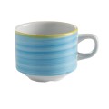 Tea Cup, 8-1/10 oz., 4-1/2" dia., with handle, stackable, scratch/chip resistant, microwave, dishwasher & oven safe up to 380°F, porcelain, yellow edge, Corona, Calypso, Blue (Ready to Ship from Factory - 4-6 weeks for transit)