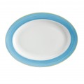 Platter, 10" x 7-1/2", oval, rimmed, rolled edge, scratch/chip resistant, microwave, dishwasher & oven safe up to 380°F, porcelain, yellow edge, Corona, Calypso, Blue (Stocked Item)