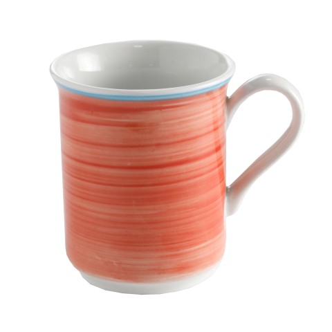 Mug, 11 oz., 5" dia., with handle, scratch/chip resistant, microwave, dishwasher & oven safe up to 380°F, porcelain, blue edge, Corona, Calypso, Coral (Stocked Item)