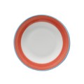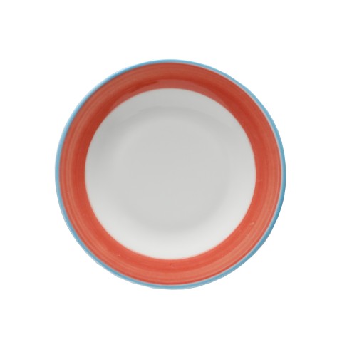 Plate, 6-1/2" dia., round, rolled edge, scratch/chip resistant, microwave, dishwasher & oven safe up to 380°F, porcelain, blue edge, Corona, Calypso, Coral (Stocked Item)