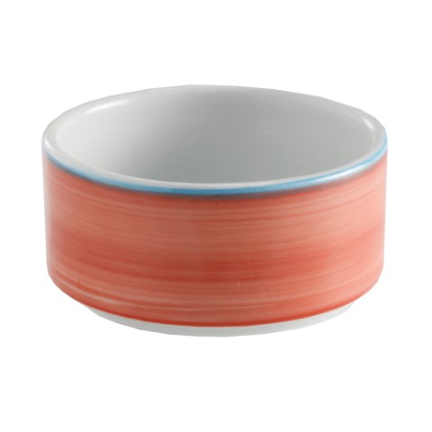 Soup Cup, 11 oz., 4" dia., round, without handle, stackable, scratch/chip resistant, microwave, dishwasher & oven safe up to 380°F, porcelain, blue edge, Corona, Calypso, Coral (Stocked Item)