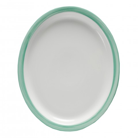 Platter, 13" x 11", oval, narrow rim, rolled edge, scratch/chip resistant, microwave, dishwasher & oven safe up to 380°F, porcelain, yellow edge, Corona, Calypso, Green, (Stocked Item)