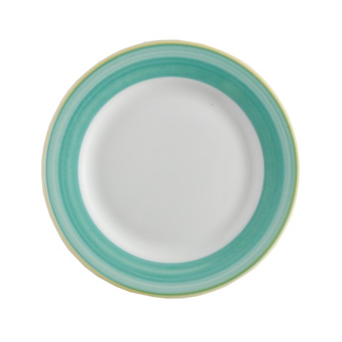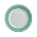 Plate, 6-1/2" dia., round, rolled edge, scratch/chip resistant, microwave, dishwasher & oven safe up to 380°F, porcelain, yellow edge, Corona, Calypso, Green (Stocked Item)