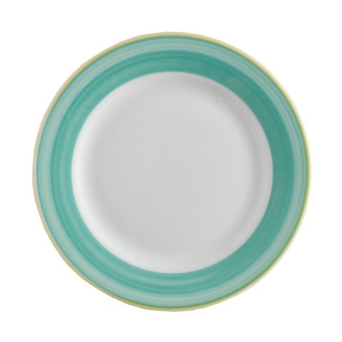 Plate, 8" dia., round, rolled edge, scratch/chip resistant, microwave, dishwasher & oven safe up to 380°F, porcelain, yellow edge, Corona, Calypso, Green (Ready to Ship from Factory - 4-6 weeks for transit)