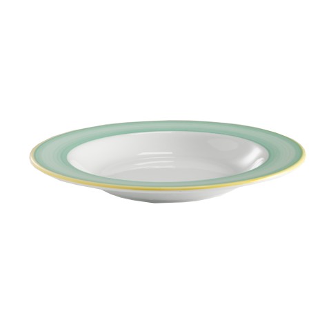 Pasta Bowl, 18-4/5 oz., 12" dia., round, rimmed, scratch/chip resistant, microwave, dishwasher & oven safe up to 380°F, porcelain, yellow edge, Corona, Calypso, Green (Ready to Ship from Factory - 4-6 weeks for transit)