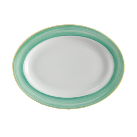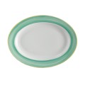 Platter, 10" x 7-1/2", oval, rimmed, rolled edge, scratch/chip resistant, microwave, dishwasher & oven safe up to 380°F, porcelain, yellow edge, Corona, Calypso, Green (Ready to Ship from Factory - 4-6 weeks for transit)