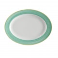 Platter, 12" x 9", oval, rimmed, rolled edge, scratch/chip resistant, microwave, dishwasher & oven safe up to 380°F, porcelain, yellow edge, Corona, Calypso, Green (Stocked Item)