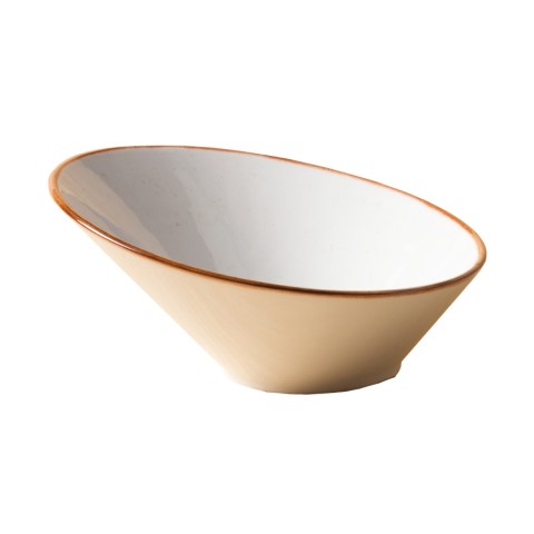 Bowl, 28.7 oz., 9-2/3" dia., slanted, round, rolled edge, scratch/chip resistant, microwave, dishwasher & oven safe up to 380°F, porcelain, reactive glaze, Corona, Artisan beige (Stocked Item)