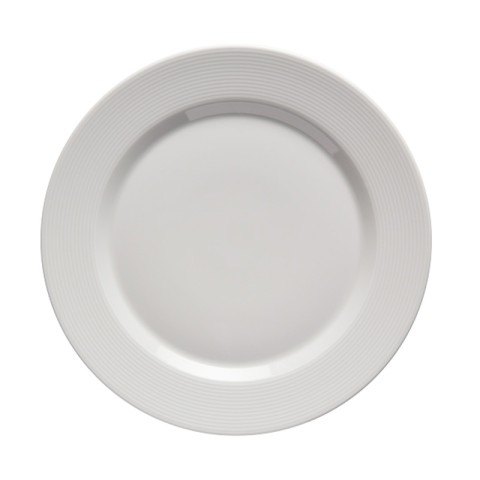 Plate, 12-2/5" dia., round, rolled edge, scratch/chip resistant, microwave, dishwasher & oven safe up to 380°F, porcelain, Corona, Celtic, bright white (Ready to Ship from Factory - 4-6 weeks for transit)