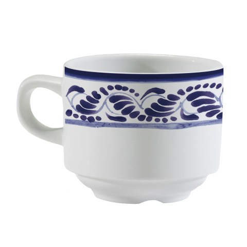 Tea Cup, 8-1/2 oz., rolled edge, stackable, scratch/chip resistant, microwave, dishwasher & oven safe up to 380°F, porcelain, Corona, Zocalo B (Ready to Ship from Factory - 4-6 weeks for transit)