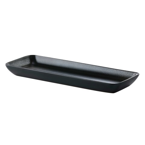 Tray, 14-1/6" x 5-1/2", rectangular, rolled edge, geometric line, scratch/chip resistant, microwave, dishwasher & oven safe up to 380°F, porcelain, Corona, Cosmos Pluto, black reactive glaze (Stocked Item)