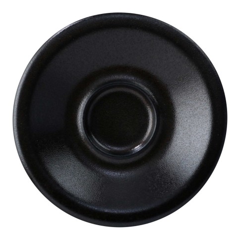 Espresso Saucer, 5" dia., round, rolled edge, scratch/chip resistant, microwave, dishwasher & oven safe up to 380°F, porcelain, Corona, Cosmos Pluto, black reactive glaze (Ready to Ship from Factory - 4-6 weeks for transit)