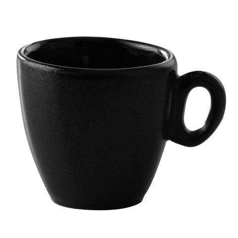 Espresso Cup, 1-7/8 oz., 3" dia., with handle, rolled edge, scratch/chip resistant, microwave, dishwasher & oven safe up to 380°F, porcelain, Corona, Cosmos Pluto, black reactive glaze (Ready to Ship from Factory - 4-6 weeks for transit)