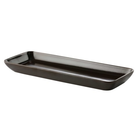 Tray, 14-1/6" x 5-1/2", rectangular, rolled edge, geometric line, scratch/chip resistant, microwave, dishwasher & oven safe up to 380°F, porcelain, Corona, Cosmos Mercury, dark brown reactive glaze (Stocked Item) (to be discontinued, contact factory for availability)