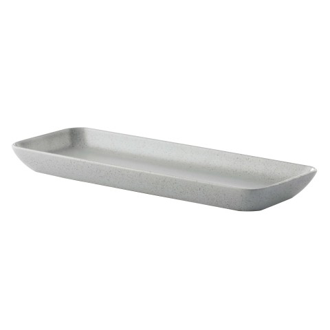 Tray, 14-1/6" x 5-1/2", rectangular, rolled edge, geometric line, scratch/chip resistant, microwave, dishwasher & oven safe up to 380°F, porcelain, Corona, Cosmos Moon, speckled grey reactive glaze (Stocked item)