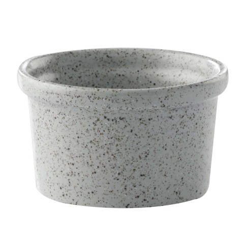 Ramekin, 6.4 oz., 3-2/3" dia., small, round, rolled edge, scratch/chip resistant, microwave, dishwasher & oven safe up to 380°F, porcelain, Corona, Cosmos Moon, speckled grey reactive glaze (Made to Order item- 6 to 8 weeks lead time, minimum order = case quantity)