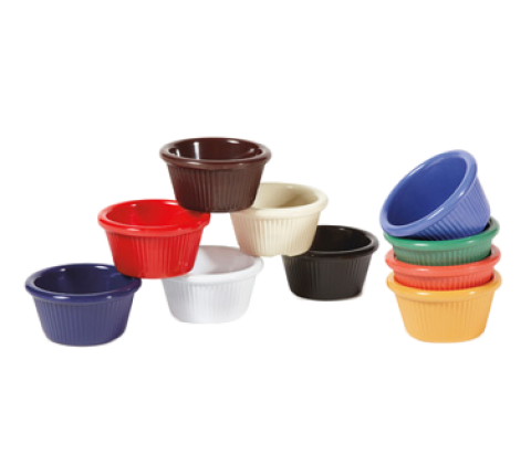 Ramekin, 2 oz., 3" dia. x 1-1/2" deep, cone shape, fluted, break-resistant, dishwasher safe, melamine, ivory, NSF